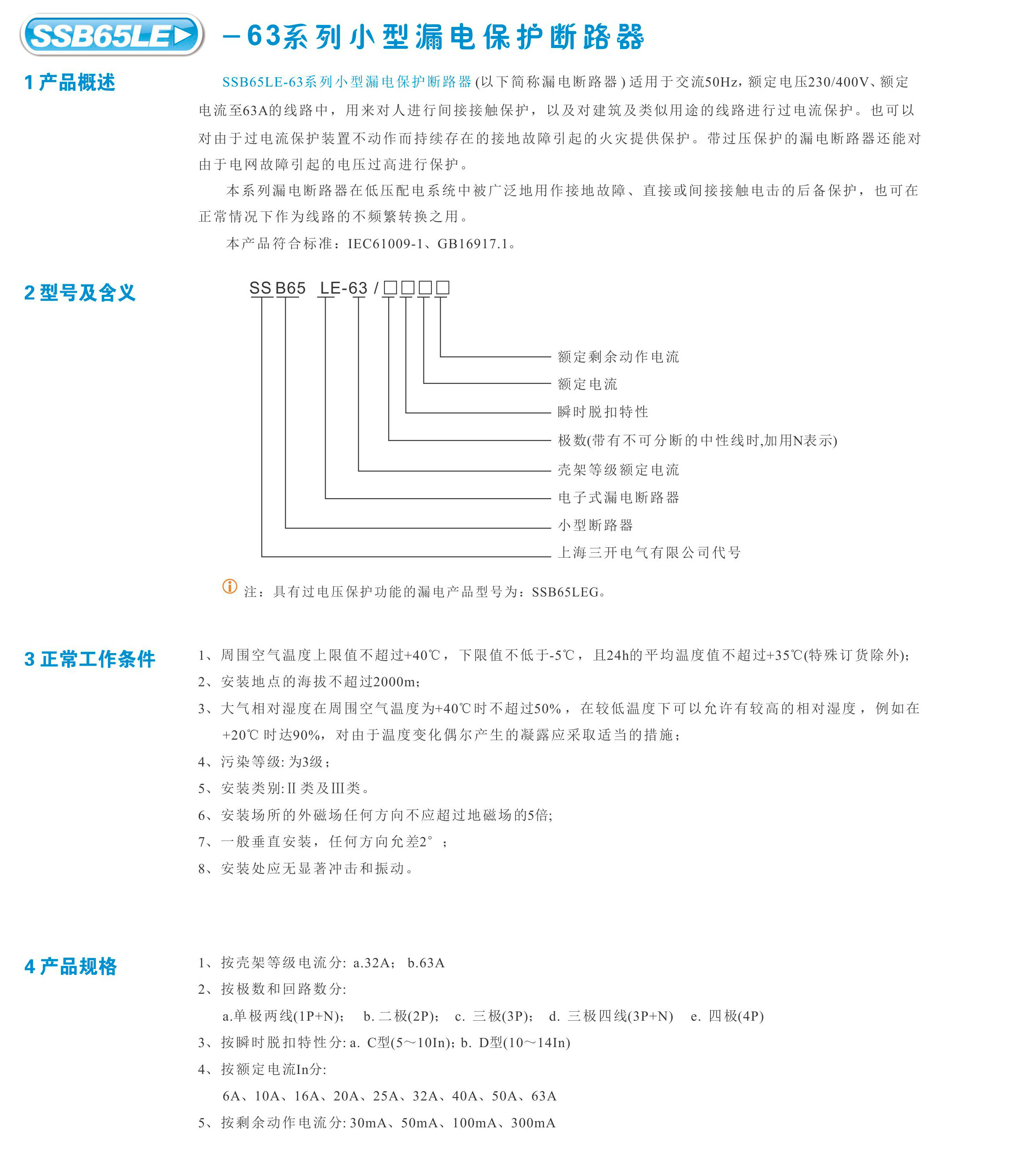 SSB65LE-63小型漏电断路器
