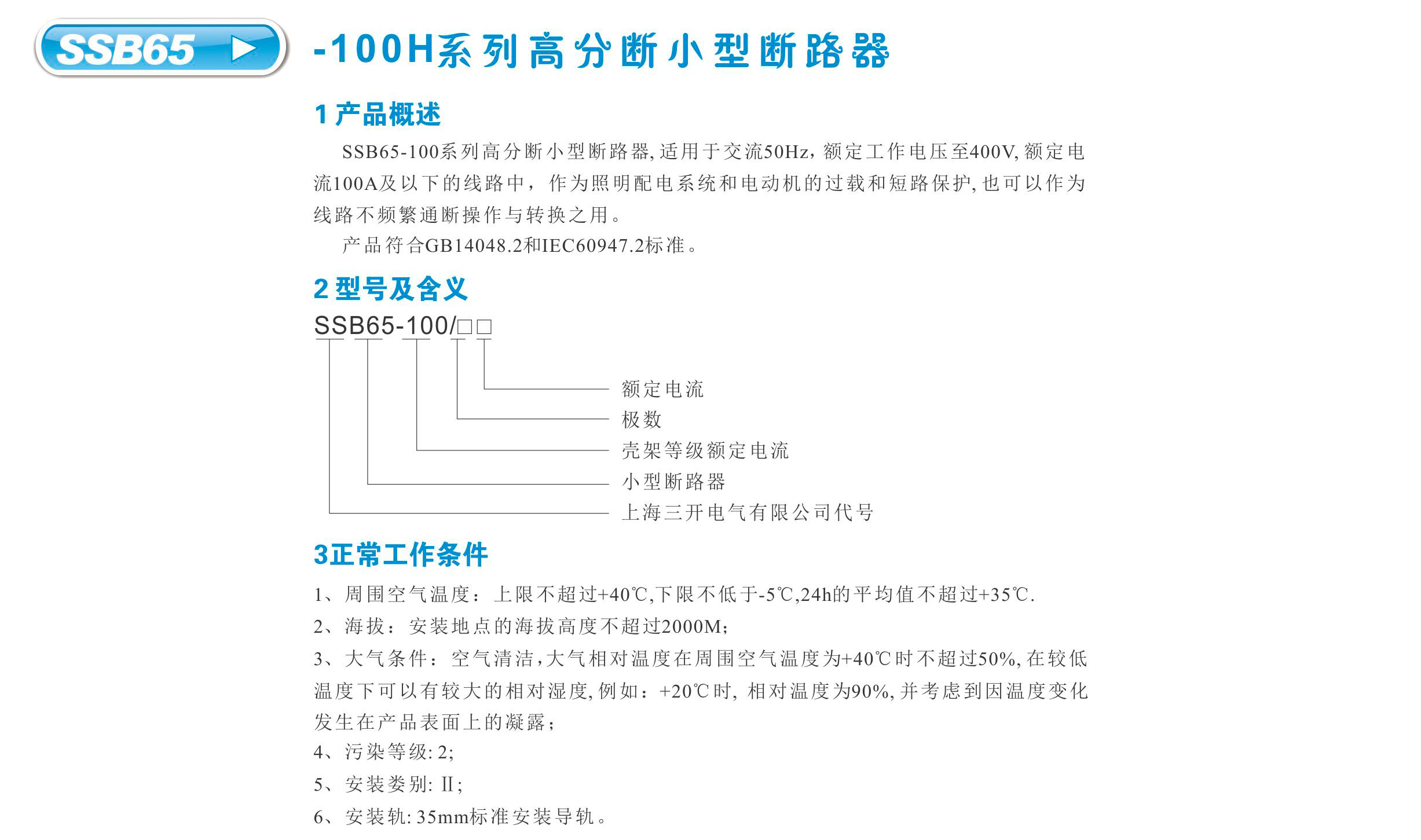 SSB65-100小型断路器