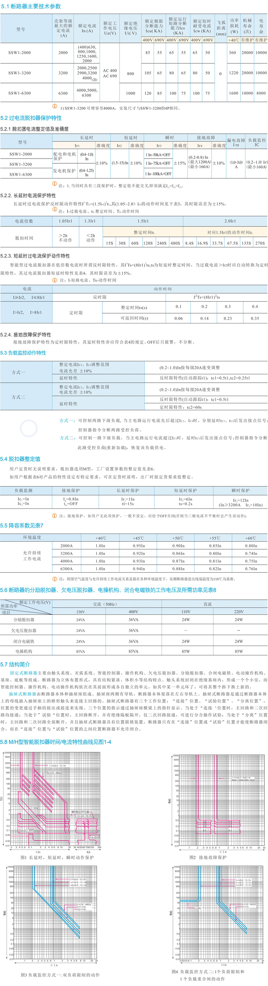 ssw1系列智能型万能式断路器(一下简称断路器)主要适用于交流50Hz,额定工作电压为AC690V及一下,额定电流为400A~6300A的配电网络中,用于配电网络中分配点鞥和保护线路、电源及用电设备面授过载、欠电压、短路和接地等故障的危害。630A及以下断路器可作为电动机的过载、欠电压和短路保护只用。断路器核心部件采用智能型脱扣器,具有精确的选择保护,可避免不必要的停电,提高供电可靠性、连续性和安全性。